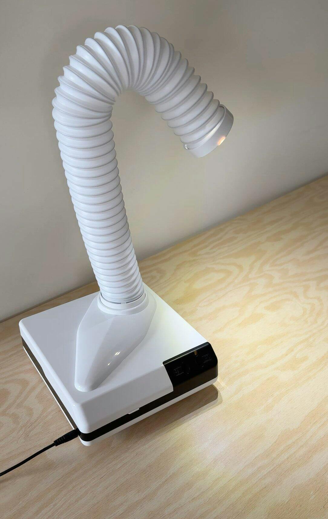 Powerful suction unit with strong LED light which is great for my set up. It's pretty compact on my desk and easy to pull the hose and turn on when needed.