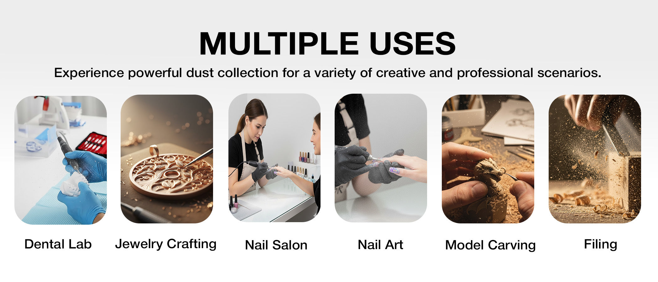 - Efficient Dust Filtration: Reduces up to 96.41% of PM2.5 particles, protecting respiratory health during grinding, polishing, or prosthetic adjustments.